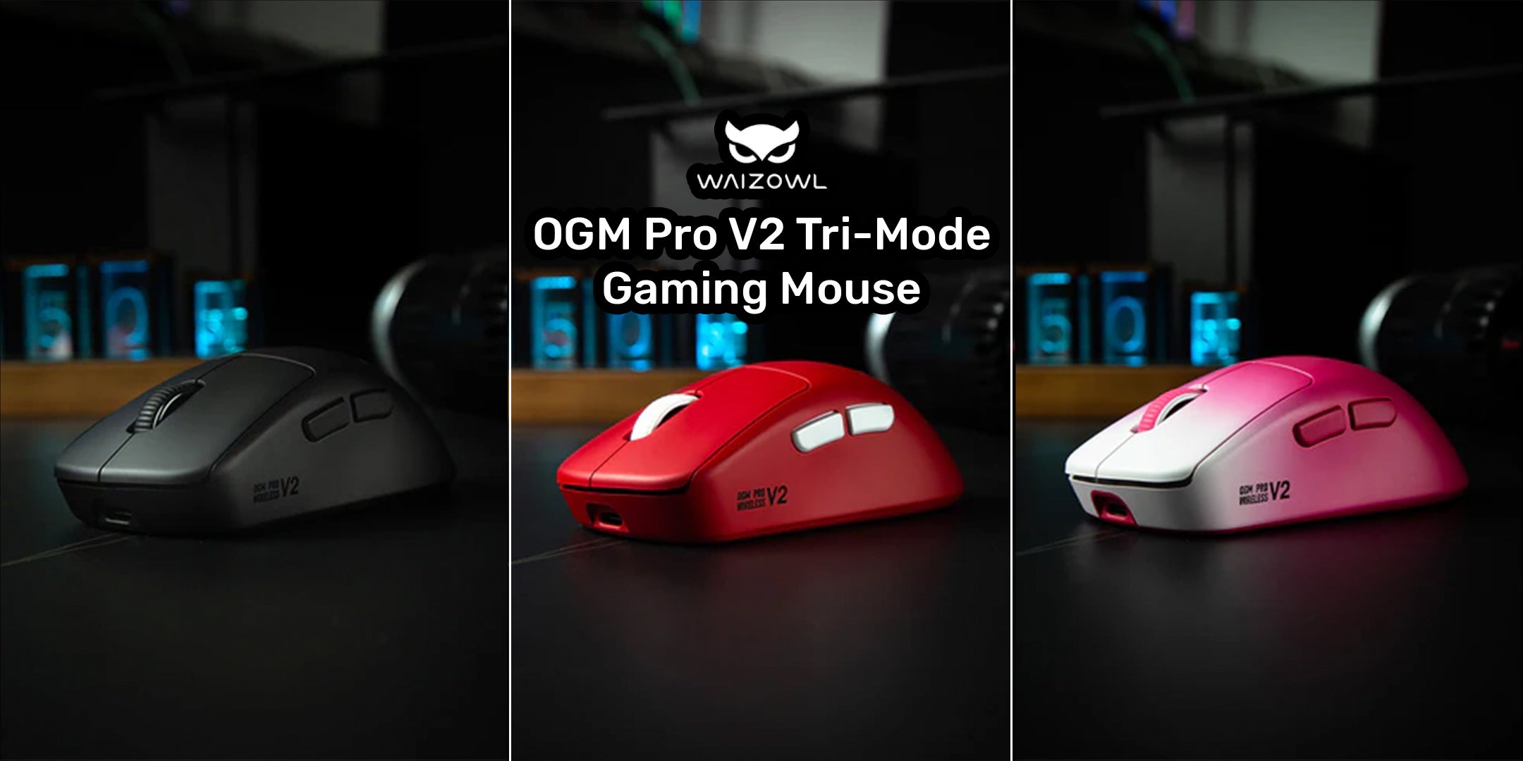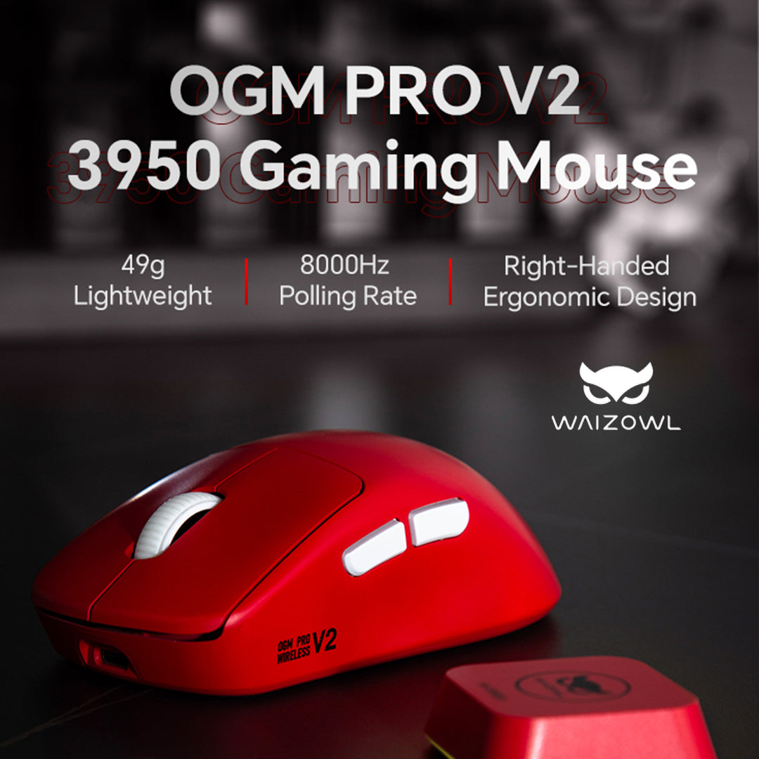 WAIZOWL OGM Pro V2 Wireless Gaming Mouse, 2.4G/BT/Wired TrI-Mode, PAW3950 Sensor, 49g Lightweight, 8K Polling Rate, Max 26K DPI, Right-Handed Ergonomic Design